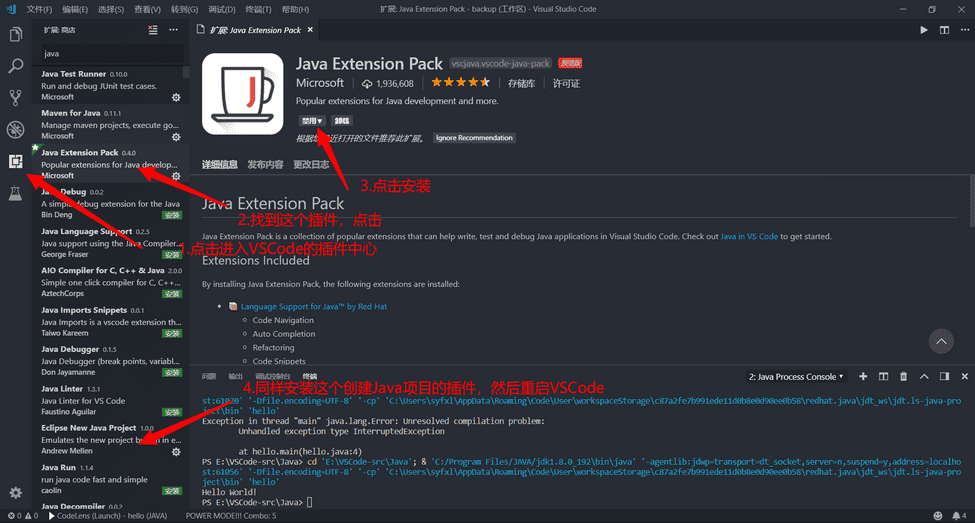 VSCode 的 Java 插件包现在似乎添加了自动安装 JDK 的功能和一些常用函数的补全