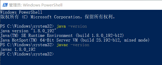 打开 PowerShell 或者 CMD,输入 java -version 和 javac -version如果没提示错误信息就代表 JDK 配置成功