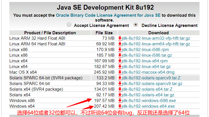 下载 JDK 并进行安装,我比较推荐安装 Java SE8,另外下载时记得点上 Accept License Agreement,否则点击不会反应